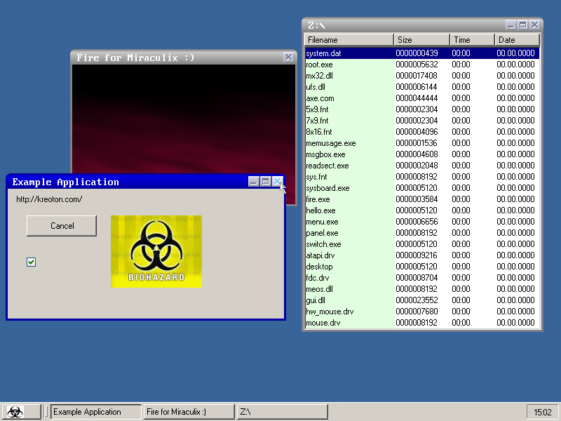 Miraculix OS, version 0.8.1 (ipconfig, ping, taskmgr)